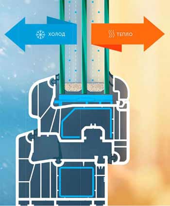 Теплозберігаючі властивості профілю WDS 400 Профільна система WDS 400 має в своєму арсеналі монтажну ширину в 60 мм,